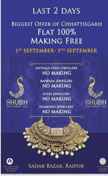 रायपुर में ग्राहकों के लिए शानदार मौका: सोने के ज्वैलरी पर 100% मेकिंग चार्ज पर छूट