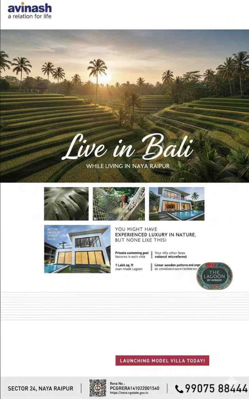 नया रायपुर में मिलेगा बाली का अनुभव, अविनाश ग्रुप ने लॉन्च किया 'द लैगून'