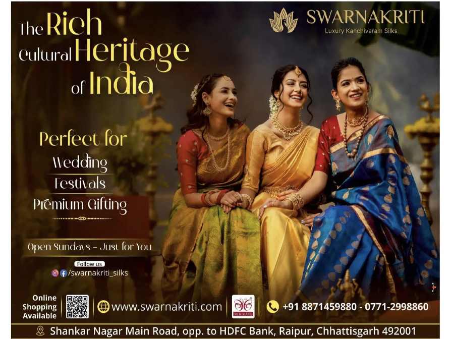 रायपुर में भारतीय संस्कृति की समृद्धि: स्वर्णकृति लेकर आया लग्जरी कांजीवरम सिल्क साड़ियों का विशेष कलेक्शन